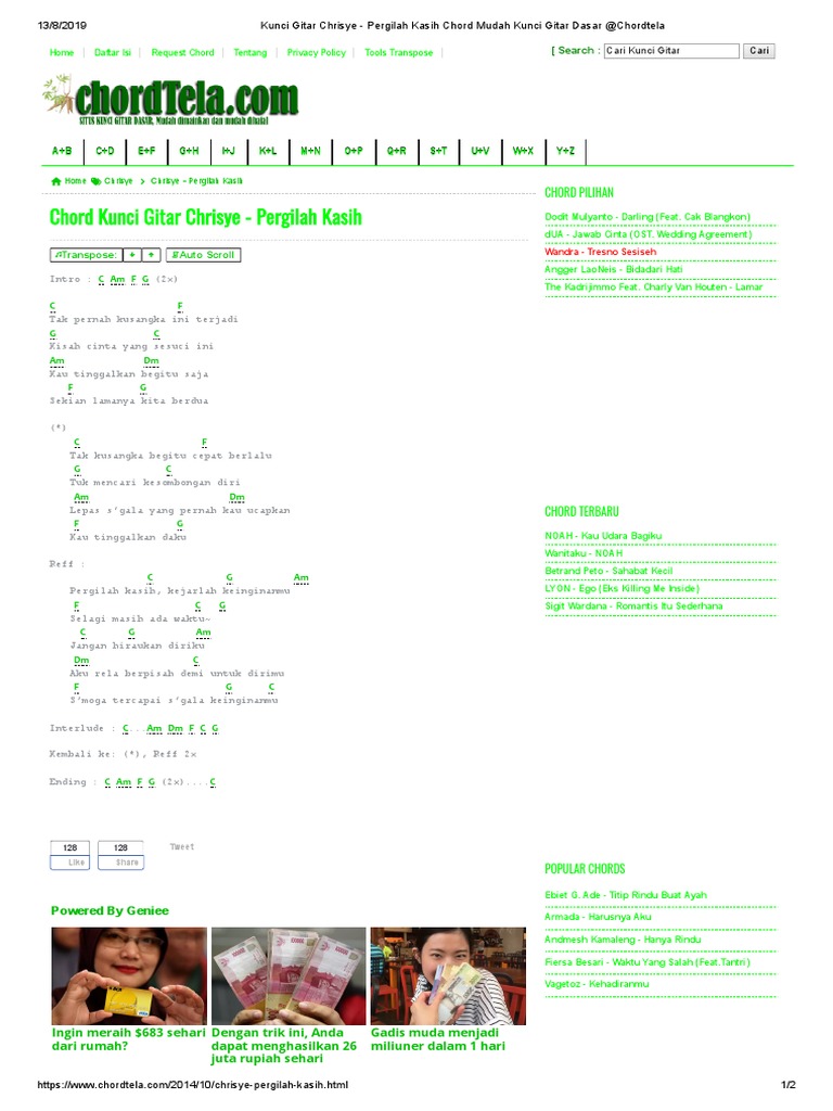 Kunci Gitar Chrisye Pergilah Kasih Chord Mudah Kunci Gitar Dasar Chordtela Pdf