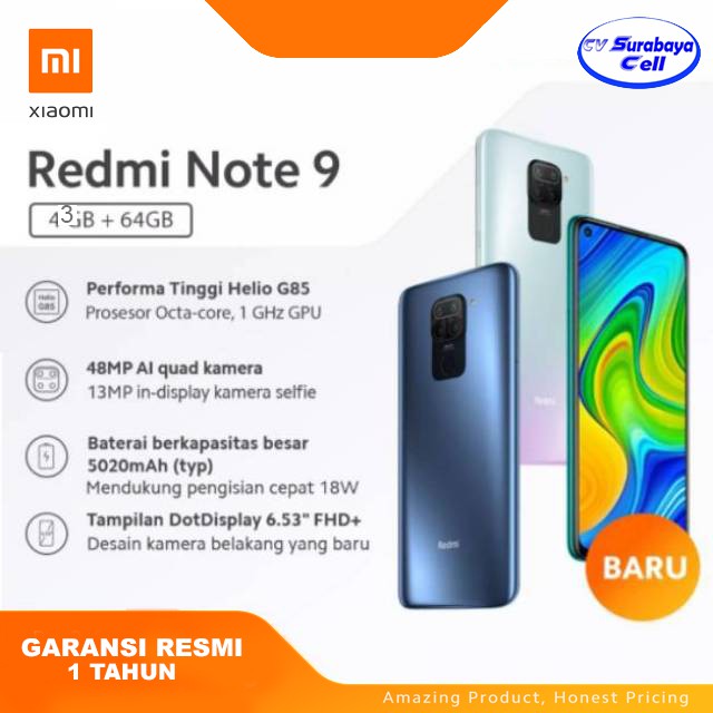 Xiaomi Redmi Note 9 Ram 4 64gb Garansi Resmi Tam 1 Tahun Shopee Indonesia