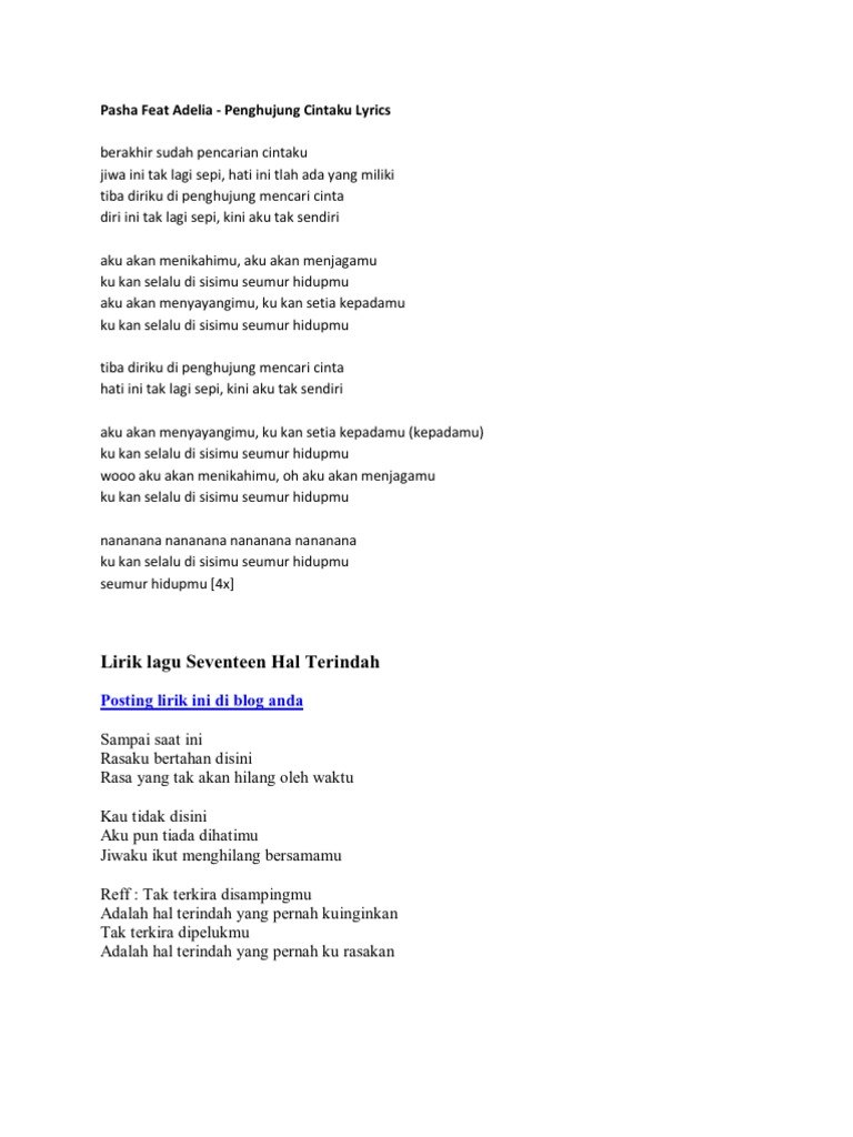 Berakhir sudah pencarian cintaku jiwa ini tak lagi sepi hati ini tlah ada yang miliki tiba diriku di penghujung mencari cinta diri ini tak lagi sepi kini a. Bb Am Gm F Em C F F Gm A D G tiba diriku di penghujung. Ungu feat Adelia - Penghujung Cintaku LirikTitle.