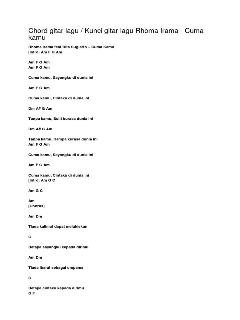 Am F G Am 2x Am. CHORDS USED Am F G Dm Em E intro Am F G Am F G Am verse Am Bila tiada mendalam F --Cinta dan kerinduan Am Tak kan terlalu dalam F --Luka yang kurasakan Dm Bila saja kutahu bahwa kesetiaanmu G F --Begitu dalam padaku Dm Em F Am Am E Takkan aku mengingkari janjiku Am. Kunci gitar dangdut kandas.